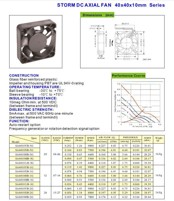 SA4010HB-5G直流系列散熱風扇軸流風機