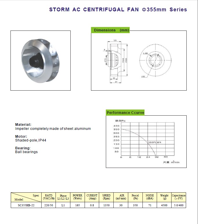 355交流系列離心式風扇離心風機
