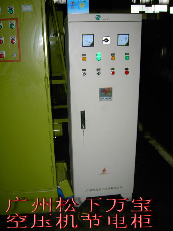 當空壓機氣缸氣壓P達到氣壓上限設定值P1后,保瓦空壓機節電控制柜通過壓力傳感器把這一信息傳遞給控制柜中央處理器,中央處理器對即時氣壓P與P1及P2值進行比較,并進行數據運算與處理后,給控制柜內變頻器下達指令,變頻器根據指令調節空壓機電機的轉速,使電機的轉速與生產所需的壓縮空氣氣壓達到最佳配合。這樣既能使空壓機供氣氣壓控制在比較平穩的范圍之內,優化了生產的動力供氣,又使空壓機的耗電得到大大降低。