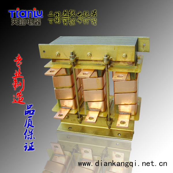 用于電網(wǎng)進(jìn)線中,通過的是交流電流, 作用是限制變頻器換相進(jìn)電網(wǎng)兩側(cè)的電壓降, 抑制諧波和晶閘管的電流上升率di/dt和電壓上升率du.dt,以及并聯(lián)變流器組的解耦。它能夠限制電網(wǎng)電壓的跳躍和電網(wǎng)系統(tǒng)操作時(shí)所產(chǎn)生的沖擊電流,有保護(hù)終端電器設(shè)備,及抑制無線電干擾。三相進(jìn)線電抗器可用于直流調(diào)速器,變頻器、軟起動(dòng)等配套使用。