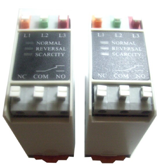 1. L1、L2、L3三相接線正確,監視器綠燈亮,繼電器吸合;如果相序接錯,監視器黃燈亮,只要交換L1、L2、L3三相中的任意兩相,監視器就能認定該相序并正常工作。當被保護的設備正常工作后出現黃燈亮,繼電器不吸合時,應視為外線路相序誤接,監視器具有防誤接保護功能;
