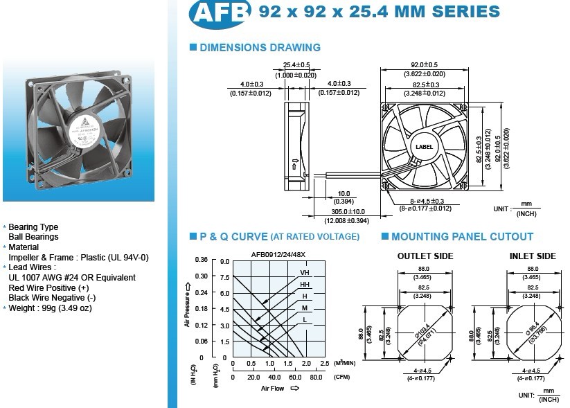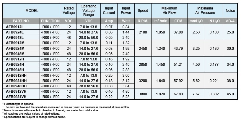 以下列舉AFB0924VH型號(AFB系列;尺寸9025)供您參考: