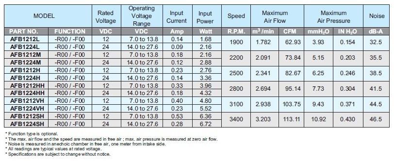 以下列舉AFB1224SH型號系列(AFB系列;尺寸12024)供您參考: