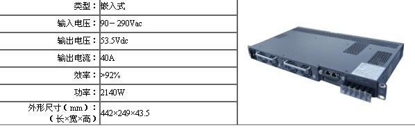 | X029C | 90 - 290 Vac | 53.5 Vdc | 40 A | 2140 W | >92 % | 442×249×43.5 |
