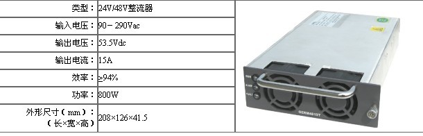 | AD801M53.5-1M1(A528) | 90 - 290 Vac | 53.5 Vdc | 15 A | 800 W | ≥94 % | 208×126×41.5 |