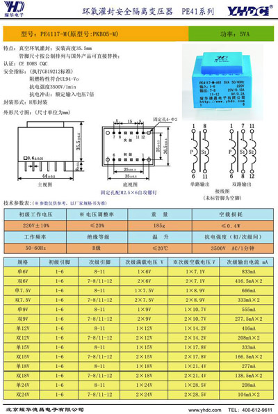 您的位置:電源在線首頁>>產品中心>>電源配套分類>>變壓器>>PE41系列灌封變壓器(5VA)產品詳情