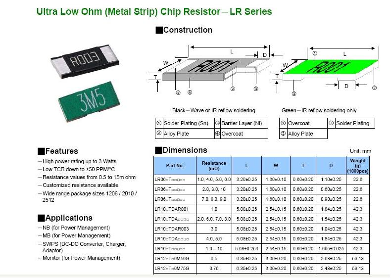 為符合高功率電氣特性,采用高純度、高導熱及低TCR及耐高溫的特殊合金,以符合客戶的需求,高導熱材質可大幅降低電路板上的散熱面積,一體成型無切割結構,可達到幾乎無電感值。