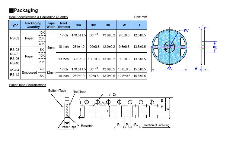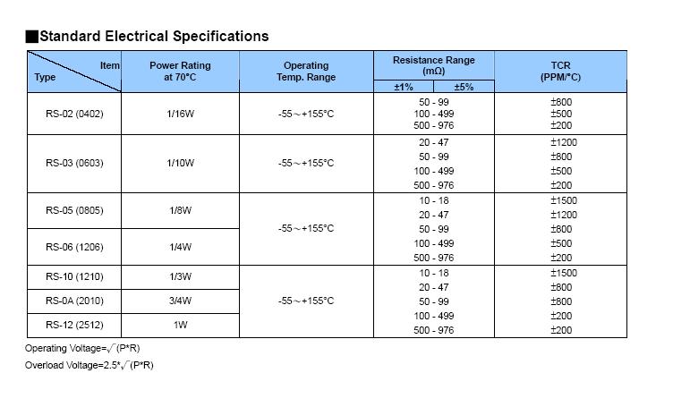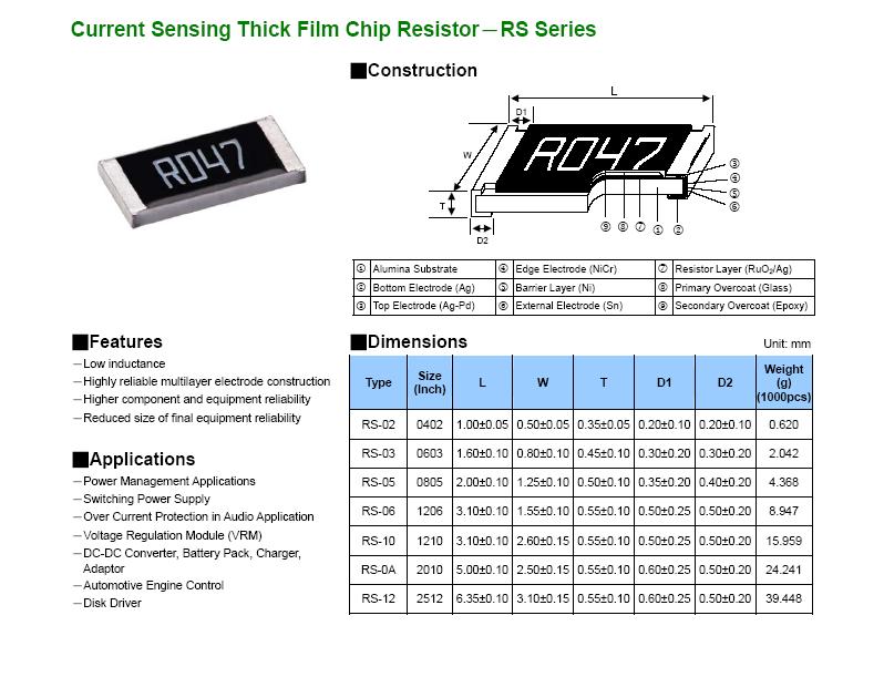 尺寸封裝:(0402;0603; 0805;1206;1210;2010;2512可選)