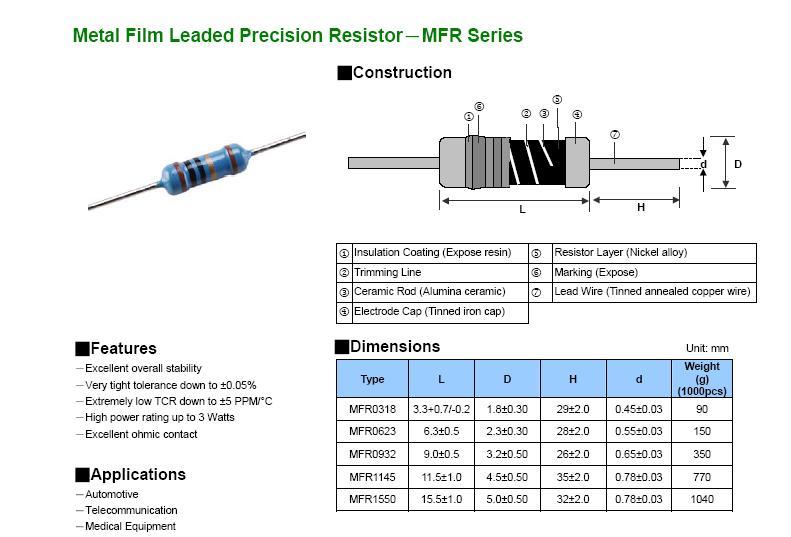 您的位置:電源在線首頁>>產品中心>>電源配套分類>>電子元件>>插件式金屬精密薄膜電阻-MFR Series產品詳情