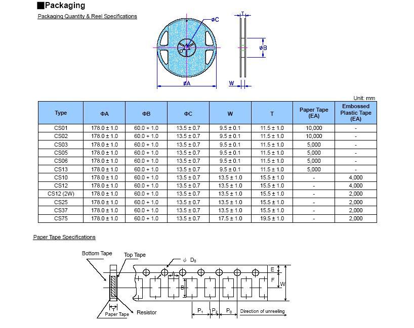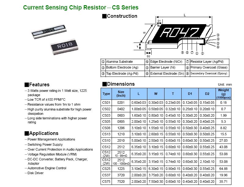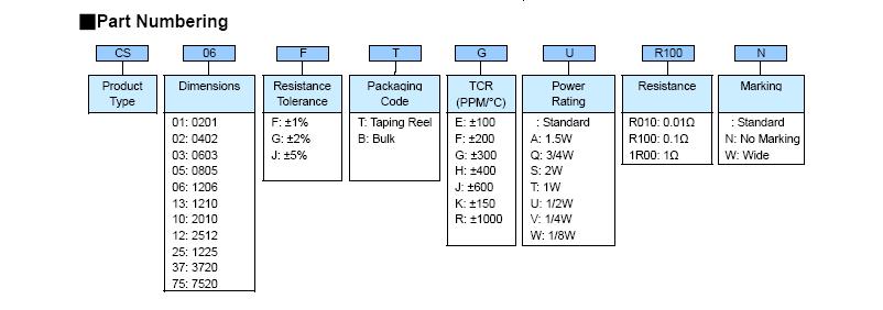 尺寸封裝:(0201;0402;0603; 0805;1206;1210;2010;2512;1225;3720;7520可選)