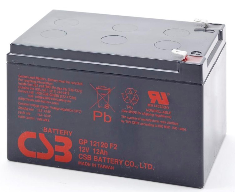 CSB的產品已被廣泛地應用于世界各國通訊設備、電力、UPS不斷電系統、緊急照明以及安全系統等產品上,CSB所生產的電池皆為高效率、免維護、并獲得ISO及UL認證。GP系列為小型泛用型高性能密閉閥調式免維護VRLA鉛酸電池。其提供容量范圍由2.2Ah至100Ah之6V與12V電池,具有不漏液、體積小、免加蒸餾水及電解液、免維護不需定期均充等特性,適合于UPS等緊急備用電源設備。