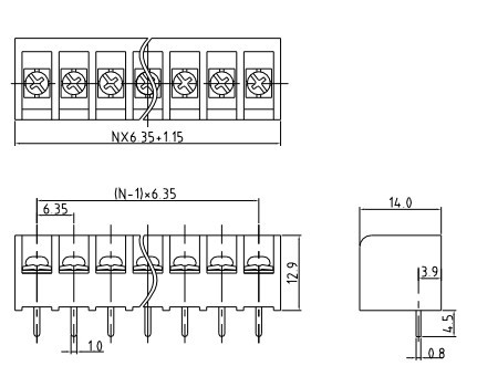 間距 Pitch: 6.35mm