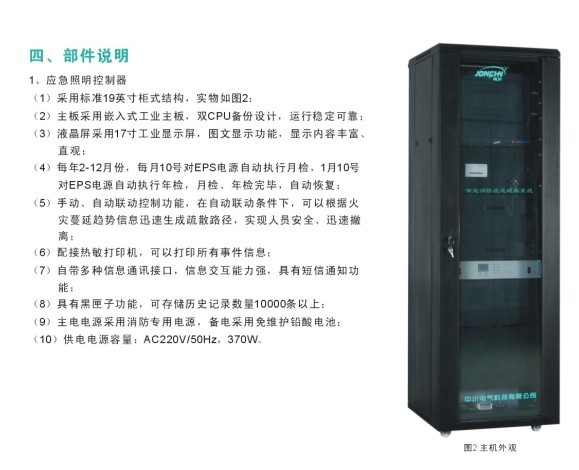 2、應急照明控制器結構采用柜式結構,可攜帶4路分機,每路分機數量最大為16臺。