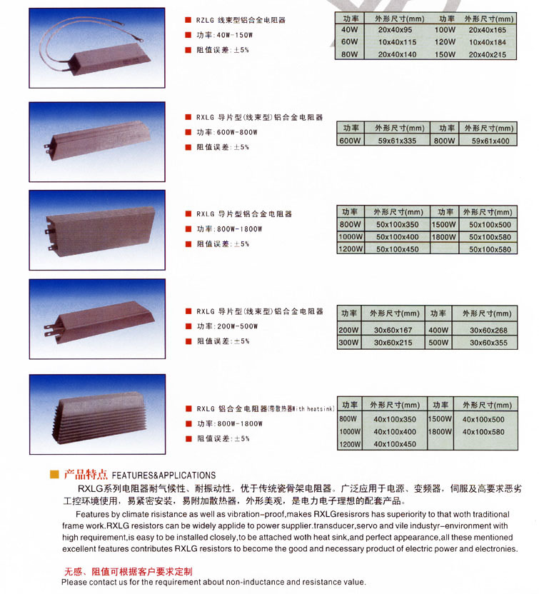 梯型鋁殼電阻:采用耐高溫材料作為電阻基體,高絕緣不燃性填充料灌封,與電阻基體電阻絲及金屬外殼緊密結合,具有較鋁殼電阻:1采用高散熱鋁外殼,高絕緣不燃性填充料灌封,極易散熱;具有耐振動、耐氣候性、長期穩定性;功率大、體積小、安裝方便、外觀美觀。。 2、功率45W-3000W. 3、應用范圍:變頻器、控制器、伺服及高要求惡工劣控環境,是電力電子的理想配套產品 4、符合ROHS規范和LEAD-FREE無鉛標準。 5、生產周期:4-5天。
