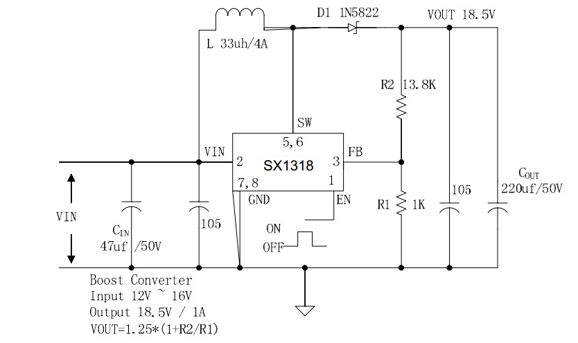 SX1318高壓大電流DC-DC升壓IC 5V升12V 12V升16V 12V升19V 12V轉19V