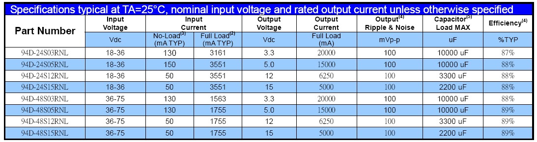 94D系列為2:1寬電壓輸入,隔離穩壓單路輸出,輸出功率75W