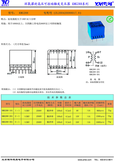 環氧灌封高壓可控硅觸發變壓器KMG288系列