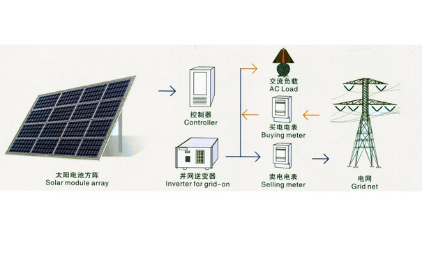 ⑷逆變器:是將直流電轉(zhuǎn)換成交流電的設(shè)備。由于太陽(yáng)能電池和蓄電池是直流電源,而負(fù)載是交流負(fù)載時(shí),逆變器是必不可少的。逆變器按運(yùn)行方式,可分為獨(dú)立運(yùn)行逆變器和并網(wǎng)逆變器。獨(dú)立運(yùn)行逆變器用于獨(dú)立運(yùn)行的太陽(yáng)能電池發(fā)電系統(tǒng),為獨(dú)立負(fù)載供電。并網(wǎng)逆變器用于并網(wǎng)運(yùn)行的太陽(yáng)能電池發(fā)電系統(tǒng)。逆變器按輸出波型可分為方波逆變器和正弦波逆變器。方波逆變器電路簡(jiǎn)單,造價(jià)低,但諧波分量大,一般用于幾百瓦以下和對(duì)諧波要求不高的系統(tǒng)。正弦波逆變器成本高,但可以適用于各種負(fù)載