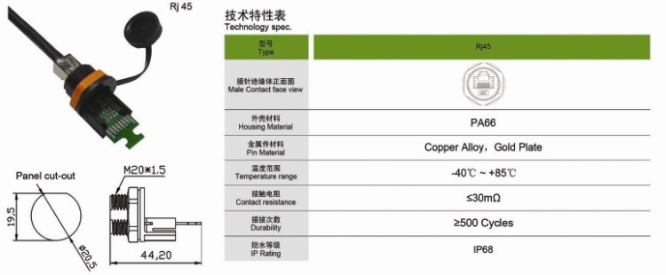 快可光電戶外防水連接器Rj45產品詳情