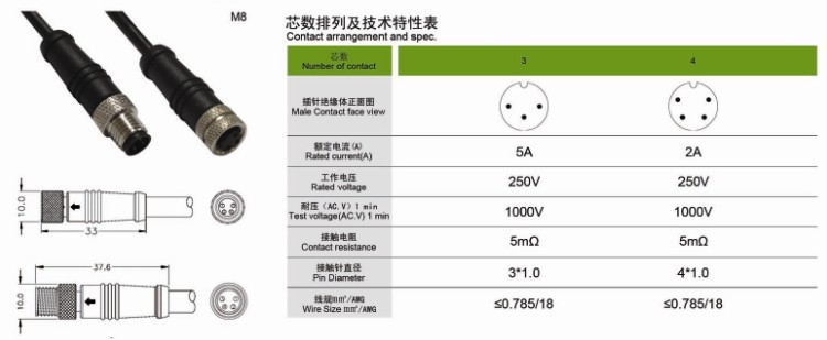 快可光電戶外防水連接器 M8產品詳情
