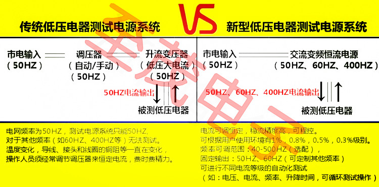 交流恒流源是為低壓電器用戶專門設計制造的,其輸出電流是恒定的,輸出波形為純正弦波,可作為檢測過流實驗儀器。本交流恒流源可帶阻性、感性、容性負載,滿足低壓電器對測試電源的要求,突出優(yōu)點:精度可達0.2%(千分之二)保證輸出電流恒定。通訊可以提供通訊控制軟件以及通訊協(xié)議,方便用戶實現(xiàn)自動化控制,最小控制精度1mA起調,其精度能達±0.1%,此前使用的大電流發(fā)生器方案由于溫度變化,導線、接頭和線圈的銅阻等一直在變化,操作人員須經(jīng)常調節(jié)調壓器來恒定電流,費時費精力,而且精度是無法與本電源相比的,低壓電器生產(chǎn)中,須對電流進行校驗、老化的項目上,使用本電源是目前最佳選擇,如熱繼電器動作電流的整定,空氣開關熱脫扣電流的測量等。