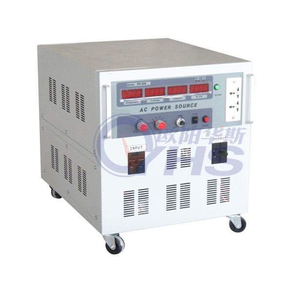 三相交流輸出電壓:低檔電壓 單相電壓0-150V,三相電壓0-260V連續可調.高檔電壓;單相電壓0-300V,三相電壓0-520V連續可調(可特殊定制做至1000V).頻率: 47-63HZ連續可調,50HZ,60HZ,2F,4F,400HZ