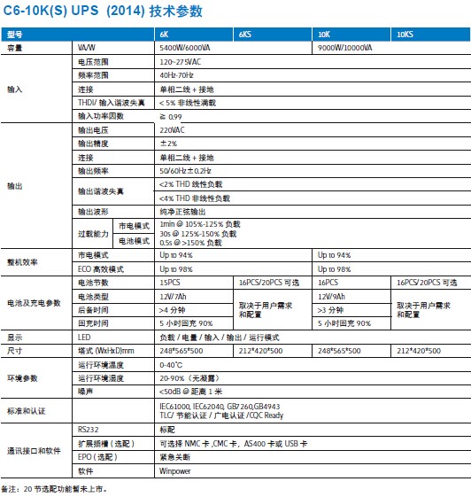 Castle UPS 6K(S)-10K(S) (2014)技術(shù)參數(shù):
