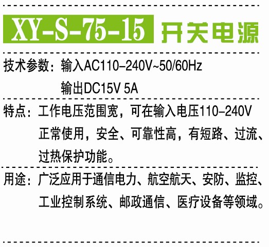 15v鐵殼開關(guān)電源 15V 5A鋁殼電源 XY-S-75-15 新英監(jiān)控電源