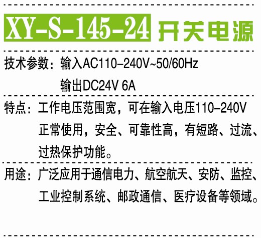 24v鐵殼開關電源 24V 6A鋁殼電源 XY-S-145-24 新英監控電源