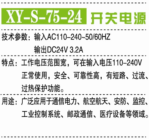 24v鐵殼開關電源 24V 3.2A鋁殼電源 XY-S-75-24 新英監控電源