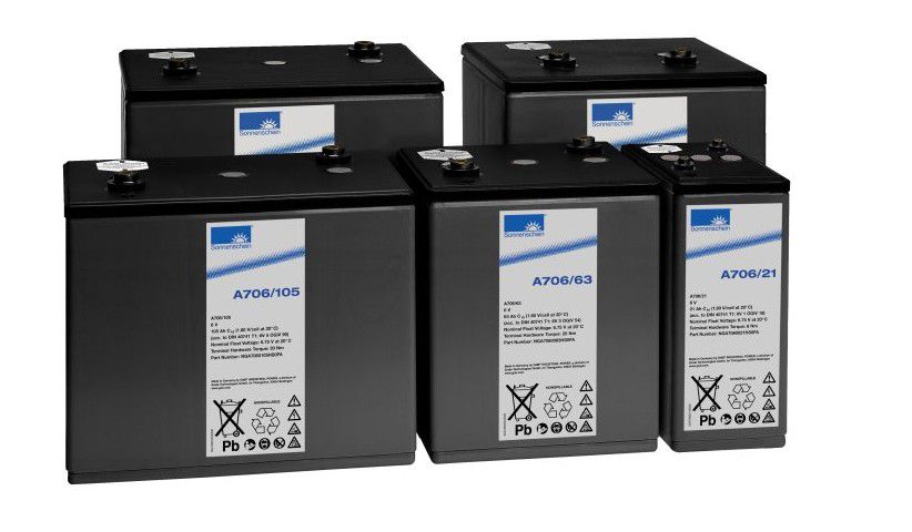 德國陽光電池 A700系列,電池電壓有6V和4V兩種,在環境溫度為20°C時,可存放2年產品設計壽命達12年,電池容量從21–280 Ah C10。