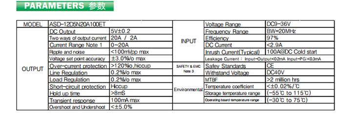 輸出額定電流:20A
