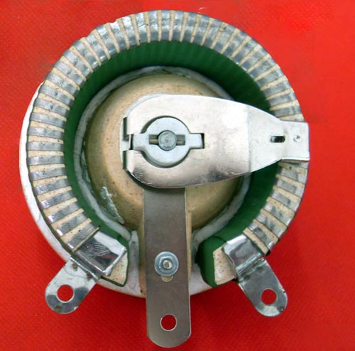 BC1型旋臂線式電阻器,是采用合金電阻絲繞于圓環形陶瓷骨架上后用高溫釉燒結固定,磁盤中心配以轉軸帶動電刷在電阻體上,從而獲得變化的電阻值。