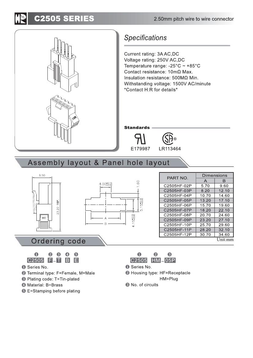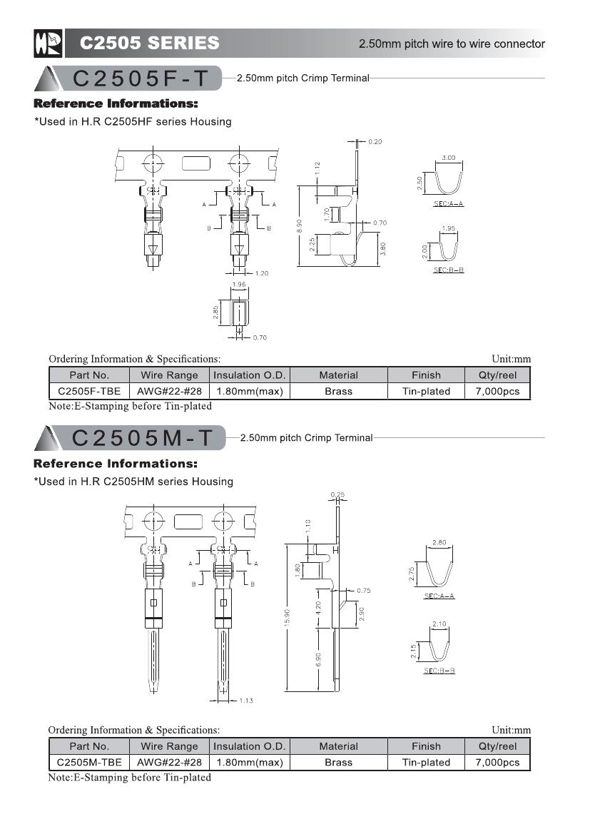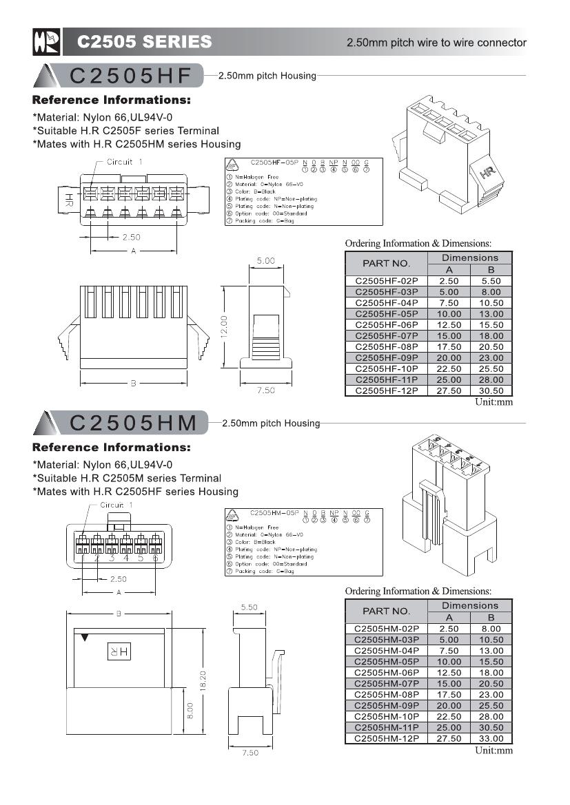 HR連接器C2505 2.50mm Pitch Terminal / Housing