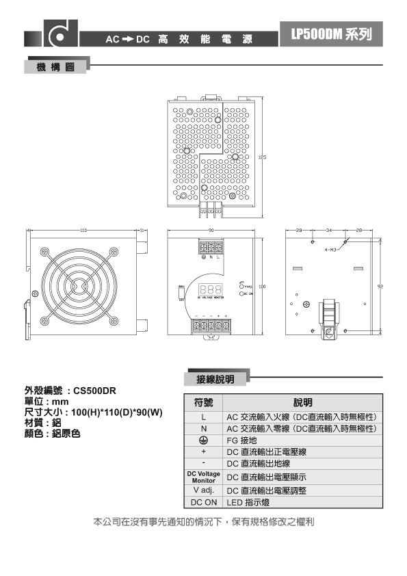 3、輸入電壓:100/220V AC(切換式電壓) ,符合全球使用標準;