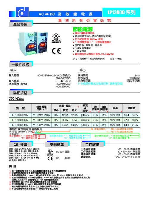 4.輸出規格:24V 12.5A    MAX:300W