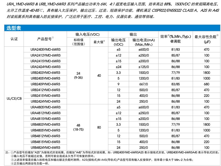 6W,超寬電壓輸入,隔離穩(wěn)壓正負雙路/單路輸出,YMD 封裝,DC-DC 模塊電源