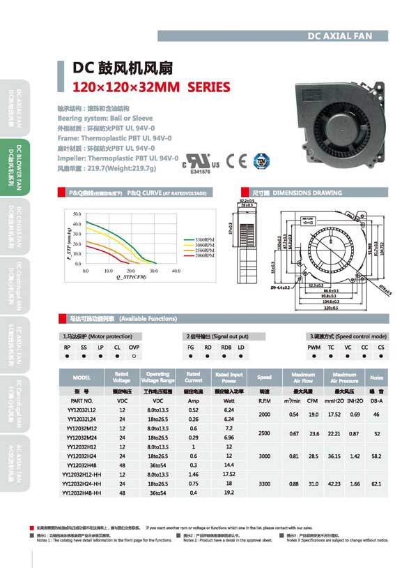 DC鼓風(fēng)機風(fēng)扇YY12032