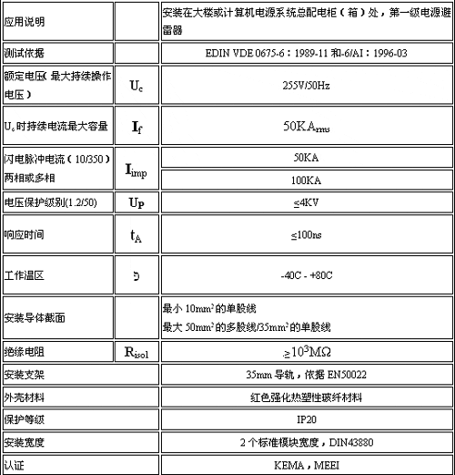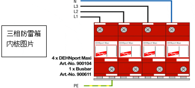 該裝置可將電源線聯(lián)于防雷等電位中,用在雷擊區(qū)電源第一級防雷,滅弧能力強,即安裝在總電源進線的配電箱前。