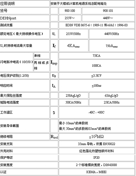 該裝置可將電源線聯于防雷等電位中,用在雷擊區電源第一級防雷,與下一級過壓保護器配合使用,如DEHNguard或其它所需的保護。