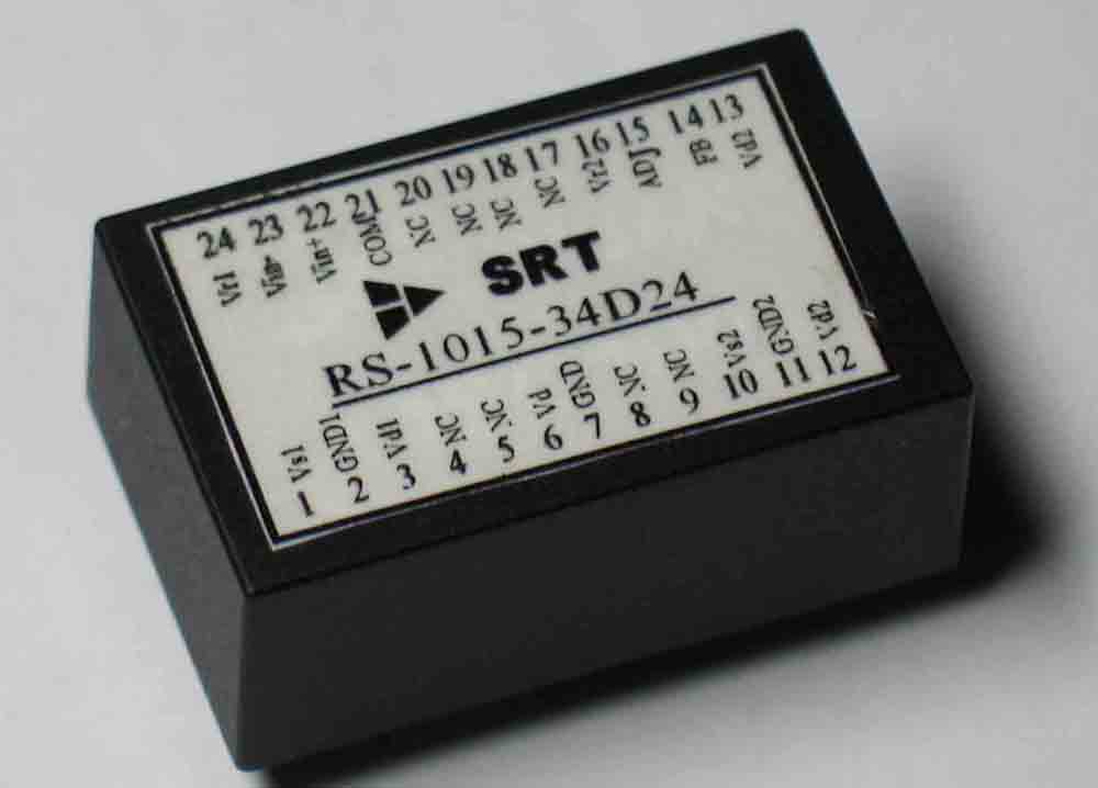 RS-1015隔離放大器采用混合集成電路,在同一芯片上集成了一個高隔離的DC/DC電源及一個高性能的隔離放大器。該電源除了為內部放大電路供電外,還向外提供二組隔離的±12V/30mA直流電源和兩個+5V的基準電壓源,用戶可以方便利用此組電源擴展外圍電路,如電橋電路和前置放大器等。