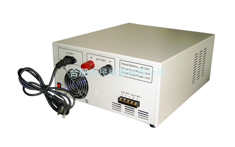 我公司生產(chǎn)的風(fēng)光互補(bǔ)控制逆變器,是集太陽(yáng)能、風(fēng)能控制和逆變于一體的智能電源。即設(shè)備可控制風(fēng)力發(fā)電機(jī)和太陽(yáng)能電池對(duì)蓄電池進(jìn)行智能充電,同時(shí),將蓄電池的直流電能逆變成額定電壓輸出的正弦波交流電,供用戶負(fù)載使用。