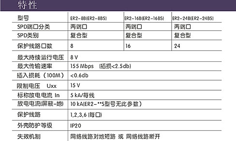 ER2-**B系列采用世界最新高速浪涌抑制器件,最大數(shù) 據(jù)傳輸率可達 155Mbps。安裝便捷,無需維護,通流容量最 高可達 5000A,反應速度達皮秒級,完全滿足于各類網(wǎng)絡 設備及網(wǎng)絡數(shù)據(jù)傳輸防雷保護的要求。
