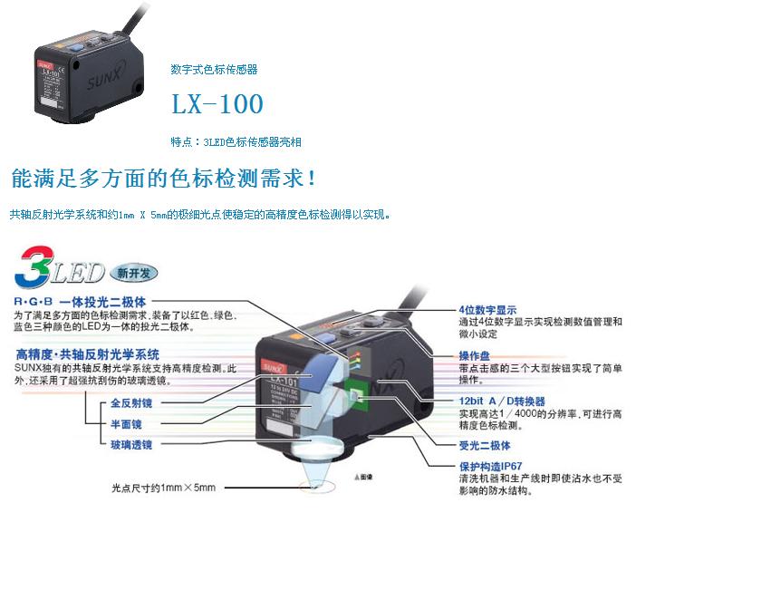 數(shù)字式色標(biāo)傳感器LX-100系列(可提供兩種選擇模式:色標(biāo)模式、彩色模式)
