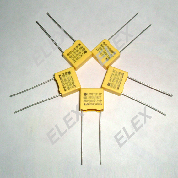 金屬化聚丙烯膜卷繞,鍍錫包鋼引線,難燃塑料外殼,阻燃環氧樹脂灌封。體積小,介質損耗低,可承受瞬間浪涌電流和脈沖電壓,電氣性能優良。八國安全認證及CQC認證。廣泛應用于電源濾波器、開關電源、電動工具等電氣設備。