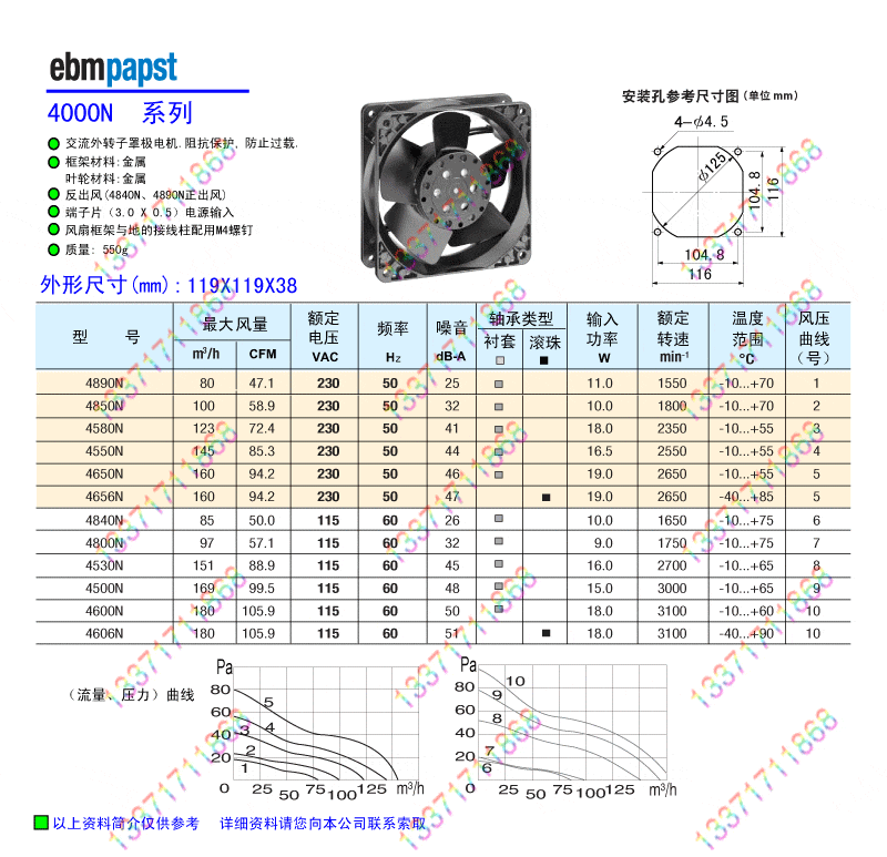 供應(工程尾貨)德國 ebmpapst 4656N或4650N 鐵扇葉230V交流軸流風扇,外形尺寸:119X119X38(mm)
