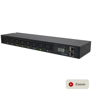 CyberPower 8-outlet(8個前端插座)機架式可控制配電裝置PDU15SWHVIEC8FNET提供200-240V 15A的電力輸出,可將原始市電從單一IEC-320 C14插頭輸入并分配給 8個IEC-320 C13插座使用,結合前端顯示器讓使用者可針對連結的設備進行實時的電力監控,相關數據呈現包含輸入電壓、電流和電源消耗量等,避免因電流超載造成機器的任何損害。透過CyberPower網絡控制接口和RJ45網絡端口,更可進行遠程的實時監控并提供電源事件紀錄包含輸入電壓、負載程度和輸出狀況等,當機器電源異常時,自動事件提醒功能也會利用電子郵件、SNMP Trap及手機簡訊主動告知使用者相關異常訊息。而無論是藉由遠程或本機都可以單獨或同時控制多個插座,功能包含控制插座開關、針對當機設備開關電源、電源卸載、開關排序和鎖住未授權負載等,提供使用者最便捷的電源管理體驗。