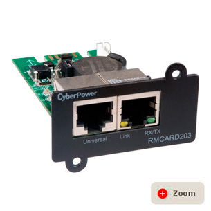 CyberPower Remote Management Card (RMCARD)讓您可透過網頁瀏覽器、網絡管理系統(NMS)、通訊接口或SNMP對Smart App系列UPS進行遠程安全監控。透過遠程監控接口,管理者可進行多項遠程管理包括:UPS排程關機/啟動/重新啟動、郵件/簡訊/SNMP Trap自動發送事件通知、事件日志紀錄。此外,熱拔插特性可確保無論是安裝或替換RMCARD時,都可以確保UPS及所連接的信息設備保有100%的運作時間及可用性!